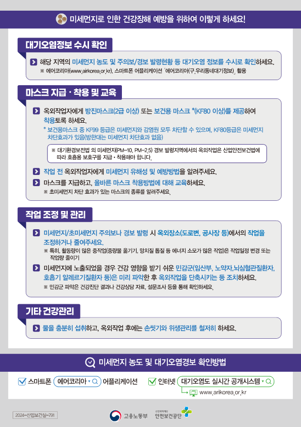 [안전보건공단] 미세먼지 건강장해 예방 가이드